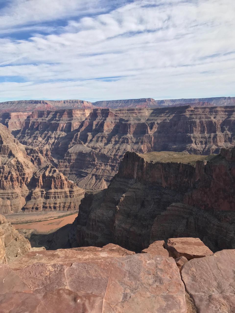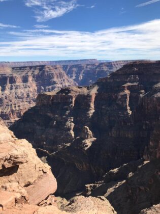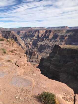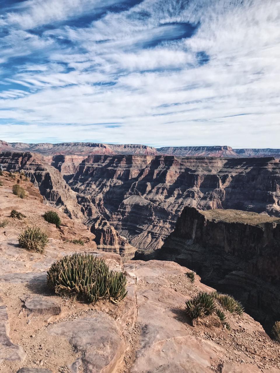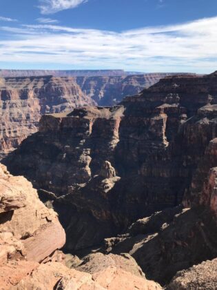 West Rim: Es la parte oeste del Gran Cañón, y la más popular para los que están visitando Las Vegas y deciden tomarse un día para apreciar el cañón, ya que es el punto más cercano a la ciudad (unos 180 kilómetros). Esta zona, propiedad de la tribu india Hualapai, se caracteriza por sus increíbles acantilados, estrechos y con la máxima profundidad. También es famosa por ser el lugar donde se encuentra el Skywalk, el mirador en forma de herradura con base de cristal ubicado en un acantilado con 1.300 metros de profundidad.