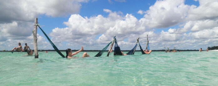 Por algunos reales se pueden realizar diversas excursiones por las atracciones de la zona: la pedra furada –una especie de ventana natural al paraíso-, el árvore da preguica –un árbol que crece acostado a causa de la velocidad y caudal de los vientos de ese lugar- y la Lagoa do Paraiso –mi favorita-, una playa donde disponen hamacas dentro de una laguna cristalina.