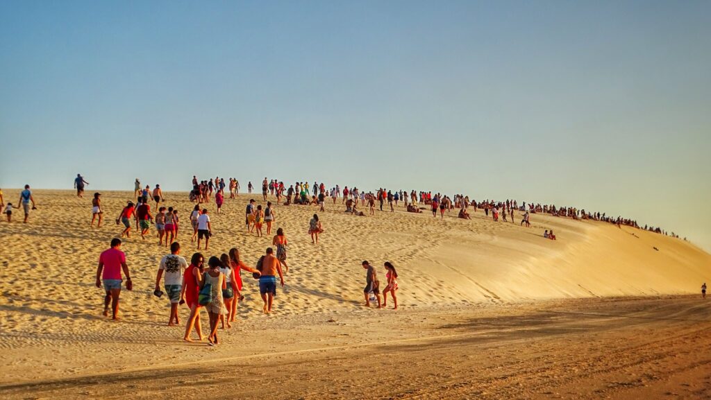 Es importante dormirse temprano, ya que al otro día se recomienda aprovechar las primeras horas de sol. Las playas son muy extensas, con arena finita y agua cristalina. Tal como te las imaginás en una costa tan al norte de Brasil. No se acostumbra llevar sombrilla, así que al mediodía se pueden utilizar las pertenecientes a los restaurantes de los paradores –por supuesto, al consumir- o irse y volver a la tarde. En el momento en que el sol se pone es costumbre en Jeri caminar hasta la Duna do Por do Sol a observar este maravilloso espectáculo desde una ubicación privilegiada.