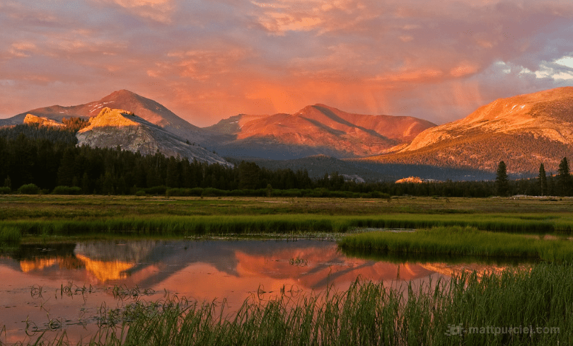 - Tuolumne Meadows: es un área llena de cúpulas y praderas a lo largo del río Tuolumne en la sección oriental del Parque Nacional Yosemite