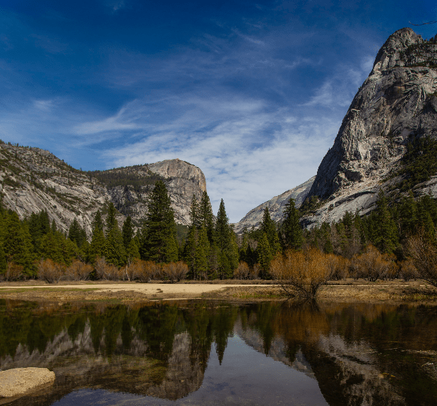 - Mirror Lake en Yosemite: Se trata de un pequeño lago que es el mejor lugar para contemplar el Half Dome, otro de los iconos del parque, que se eleva 1.500 metros sobre la base del Valle Yosemite.