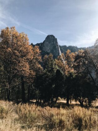 - El Capitán: Tras entrar en el parque por la ruta 49, te vas a encontrar con un mirador desde el que vas a poder disfrutar de las primeras vistas panorámicas del Valle Yosemite. Desde este primer mirador, a lo lejos, ya distinguimos el promontorio rocoso conocido como El Capitán, una roca de 914 metros de altura.