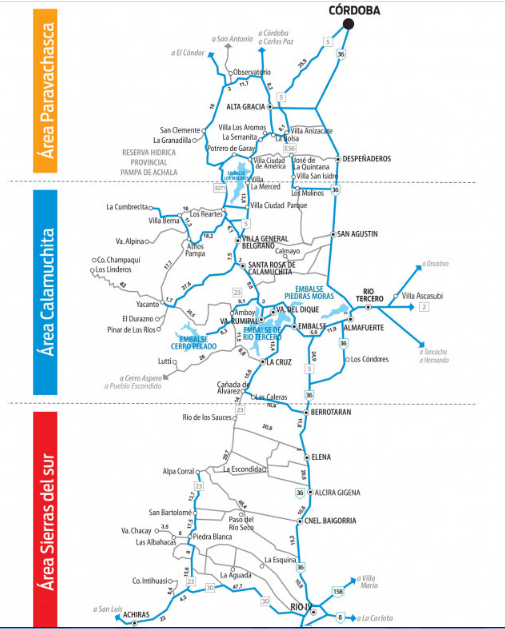 - Por San Javier: La alta dificultad de este circuito, sumada a los casi 200 kilómetros que separan a la localidad de Córdoba Capital, nos hará pensar más de una vez si esta es la opción más adecuada para nuestra actividad.