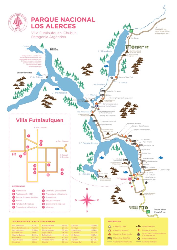 El primer punto estratégico en la recorrida por el Parque Nacional Los Alerces es la Villa Futalaufquen, lugar ubicado a 50 kilómetros de Esquel y que limita al Oeste con la majestuosa Cordillera de los Andes.