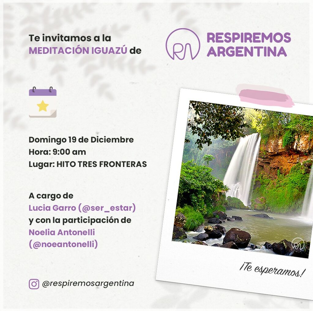 La idea de RespiremosArgentina es llevar a cabo una MEDITACIÓN MULTITUDINARIA invitando a la gente del lugar y a turistas que estén de visita, en un punto estratégico del destino. Confían en que la gente del lugar se movilizase para vivir un atardecer único en compañía de una meditación guiada, ofreciendo un momento mágico que va a transmitirse en las redes sociales.