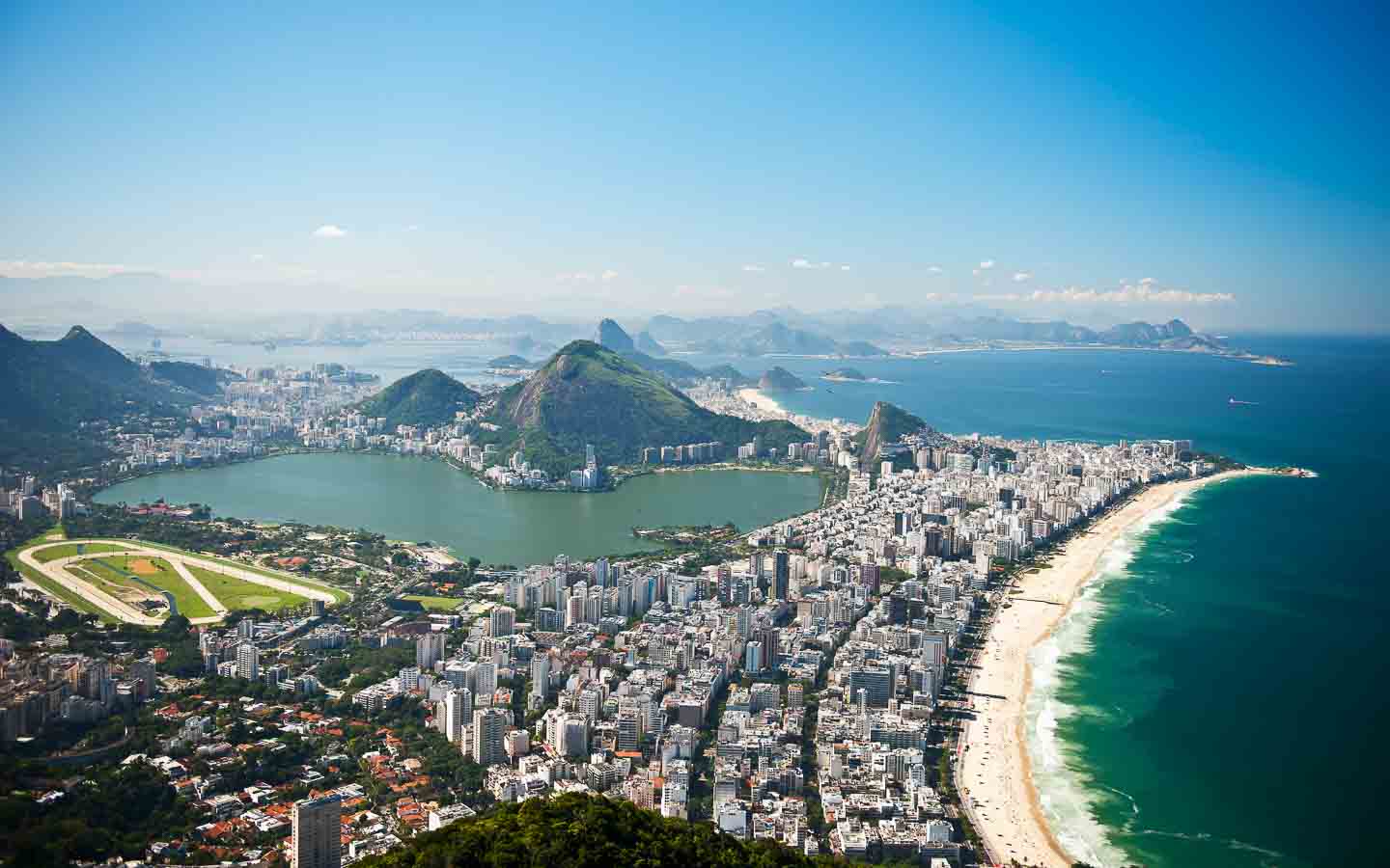 - Playa Copacabana: La playa más famosa de la ciudad, de Brasil y, probablemente, del mundo. Se encuentra en el barrio del mismo nombre, en el sur de Río de Janeiro. Aquí tienen lugar eventos musicales, deportivos y de todo tipo. Desde campeonatos de voleibol de playa y fútbol sala hasta grandes conciertos con los más famosos de la música brasileña.