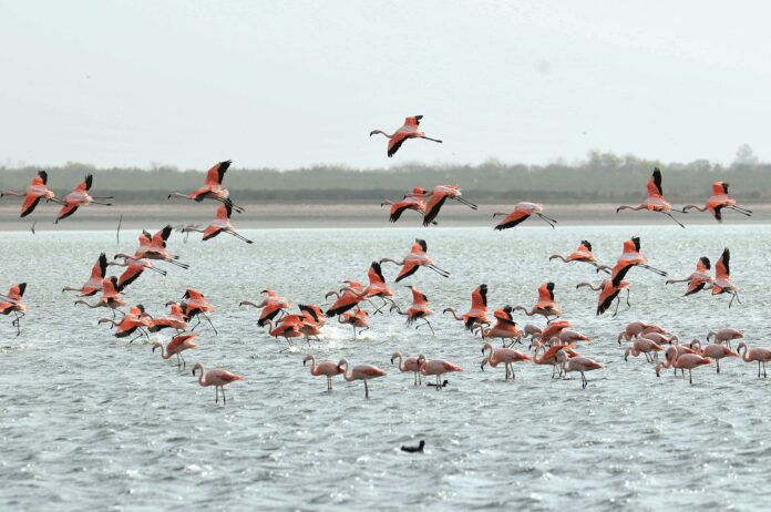 En la etapa de nidificación estas aves viven en zonas de bajas temperaturas, como Alaska o Canadá, pero para la época estival, vuelan desde el norte de América hasta la cuenca salada de Córdoba. Por ende, en invierno se pueden avistar flamencos de James, parinas grandes, que se suman a los flamencos australes (que anidan y habitan todo el año en la región). Por ello, en los meses de junio, julio, agosto y septiembre, se concentran aquí impresionantes colonias de flamencos aglomerados, que llegan a sumar entre 4.000 y 7.000 especímenes.