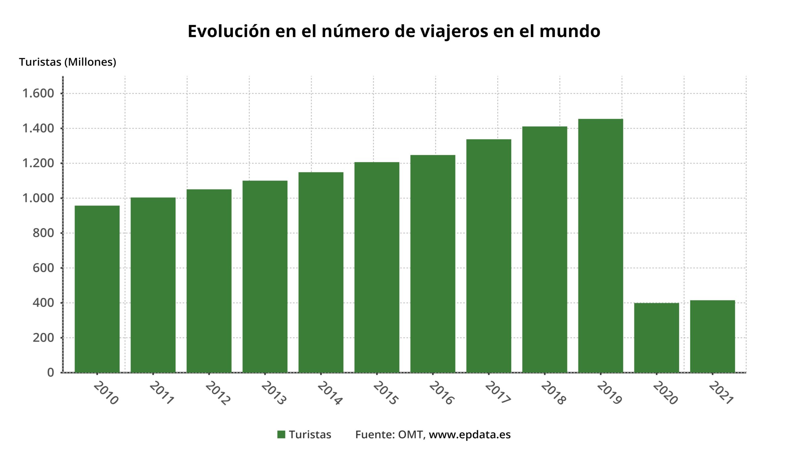 Una buena noticia del 2021, dentro del turismo mundial, lo marcó el incremento del 4% de dicho año en comparación con 2020 (415 millones de turistas frente a 400 millones del 2020)