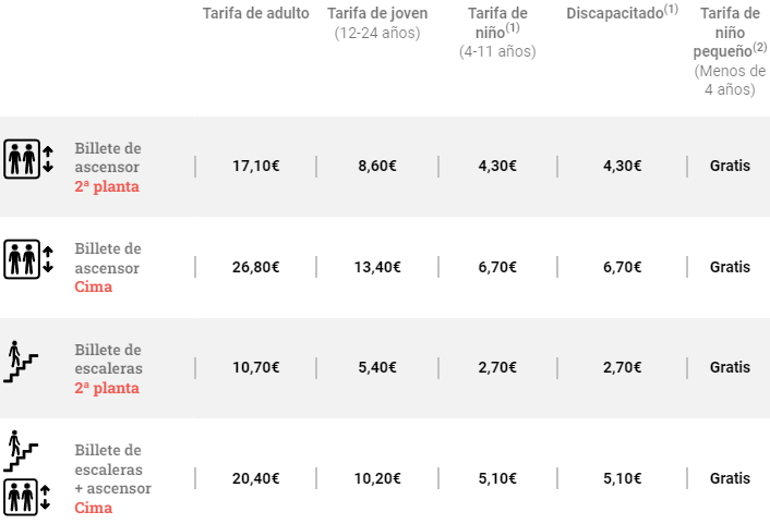 Tiene una altura total de 330 metros y dispone en tres niveles accesibles con diferentes tickets. Un dato importante a tener en cuenta es que el precio de las entradas varía dependiendo de si durante la visita usamos o no el ascensor que se encuentra en la torre. Los precios son los siguientes: