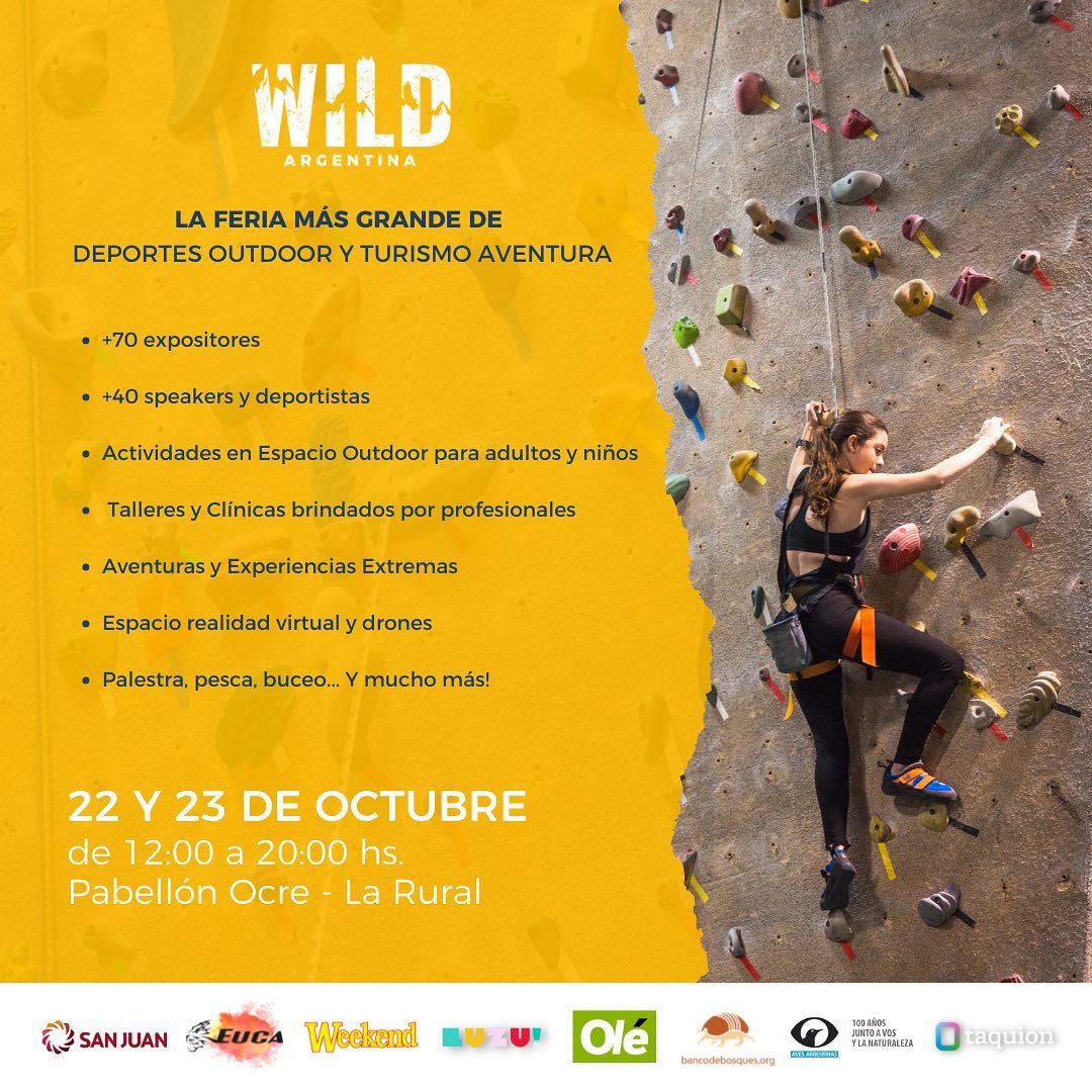 Los fanáticos de los deportes outdoor y el turismo de aventuras ya tienen una plan imperdible para el fin de semana: la Feria Wild. El evento, a realizarse los días 22 y 23 de octubre, se llevará a cabo en el Pabellón Ocre de La Rural