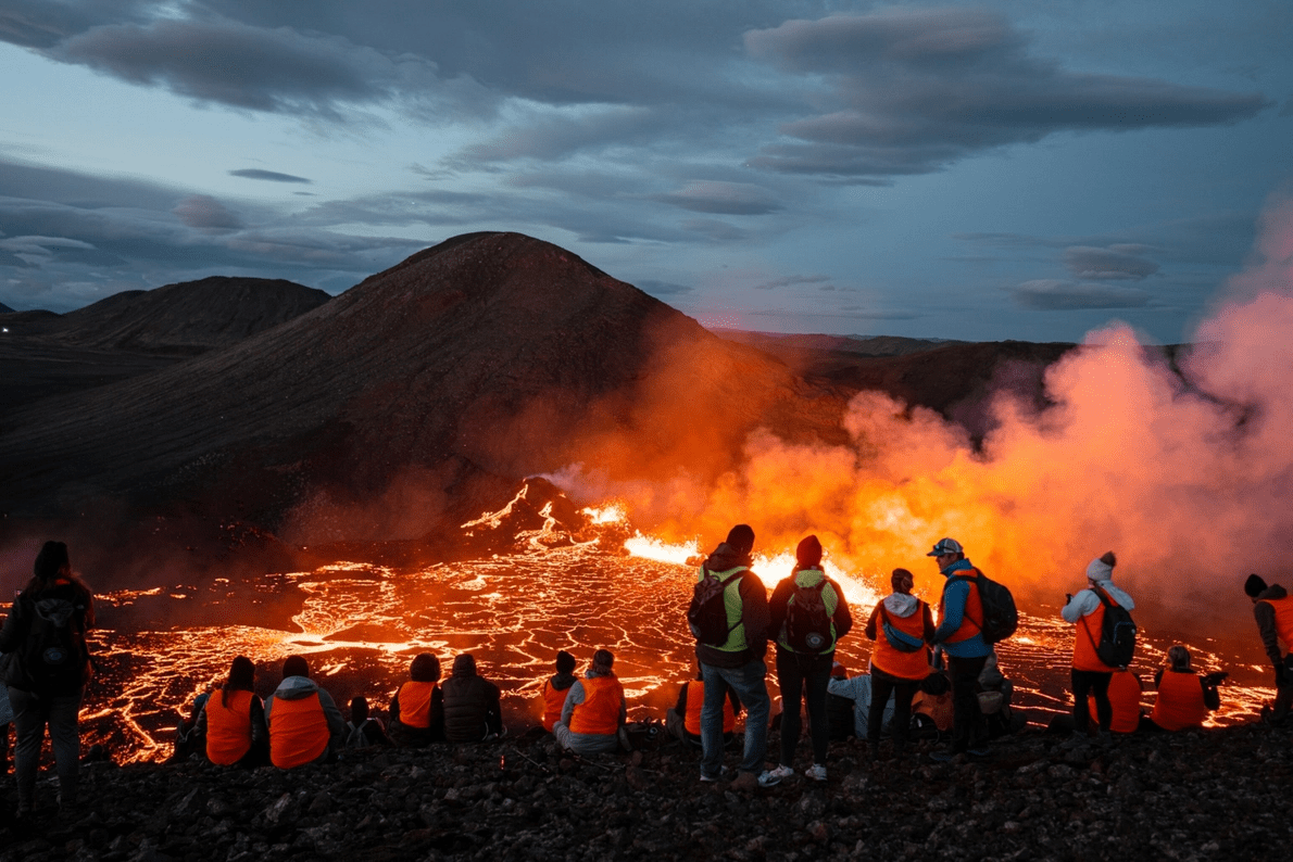 El volcán Fagradalsfjall de Islandia estalló dos veces en menos de un año atrayendo a miles de personas para disfrutar de las impresionantes escenas de los vastos campos de lava burbujeante. El turismo de volcanes ha tenido un auge en la última década, a pesar de su peligrosidad.