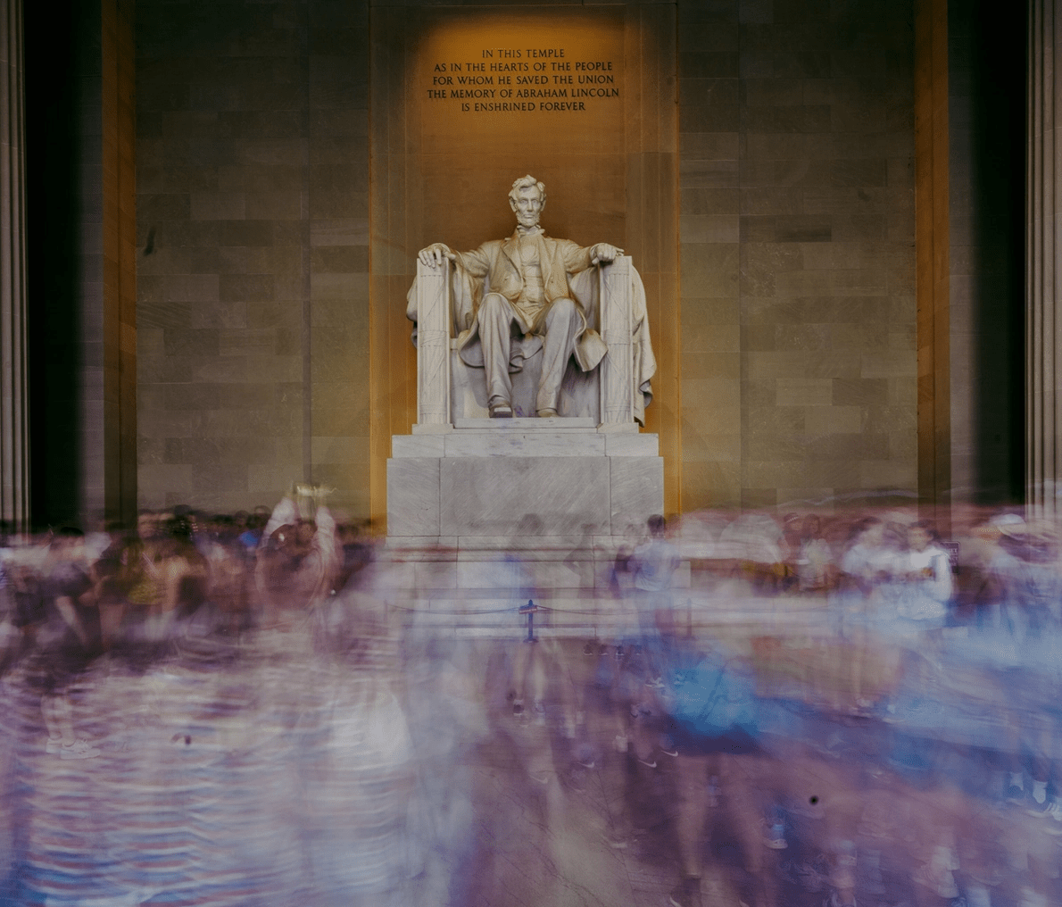 Ubicado en el estado de Washington DC, el Monumento a Lincoln está tallado en 38 000 toneladas de mármol, piedra caliza y granito. Fue realizado por el escultor Daniel Chester French. La fotografía seleccionada fue tomada el 30 de mayo de 2022, día en el que se conmemoró el centenario de la construcción del monumento
