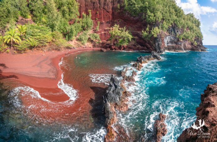 Si hay un destino que se caracterice por la belleza de sus playas ese es Hawai. La particularidad de Kaihalulu es que la arena del lugar presenta un color rojo. Para poder acceder a esta playa hay que atravesar propiedades privadas, un camino descendente y empinado, angosto y con curvas, y que puede volverse resbaladizo ya que detrás de la playa hay un cono de ceniza de lava que provoca una constante erosión.