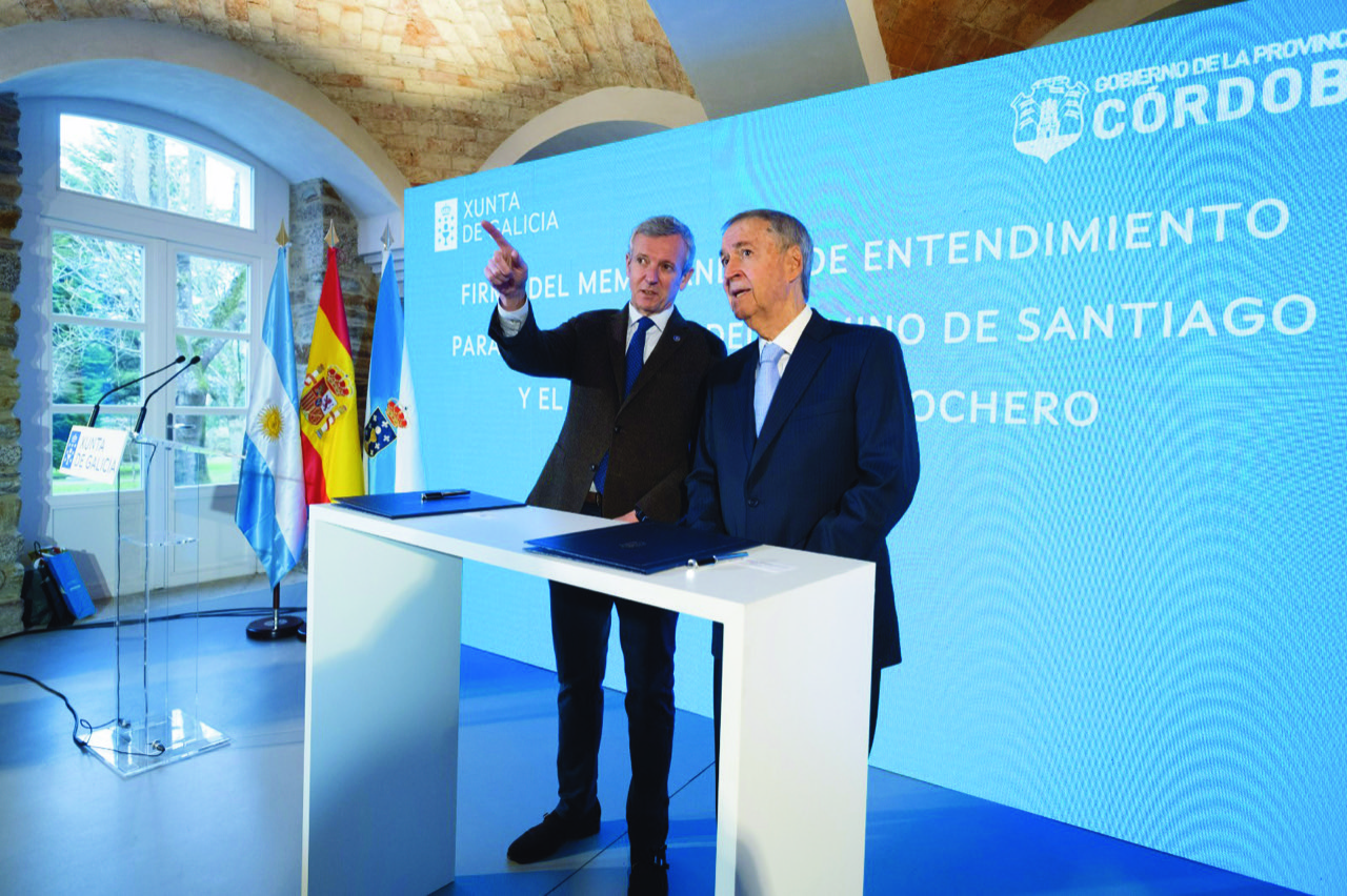El gobernador Juan Schiaretti participó del acto junto al presidente de la Xunta de Galicia, Alfonso Rueda Valenzuela, en España, con el objetivo de desarrollar la cultura de peregrinación en Córdoba y Galicia.