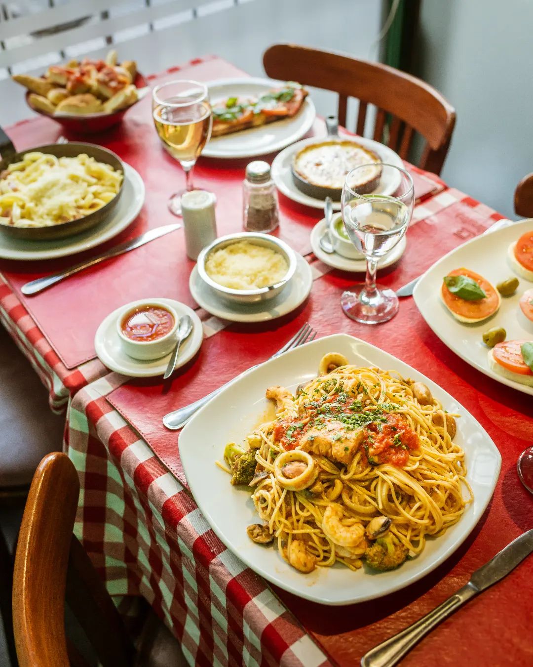 Los comensales llegan a esta lugar para estar un poco más cerca de Italia sin dejar de lado el toque porteño. ¿Los platos más aclamados? Las pastas: es difícil no tentarse con las rellenas, como los ravioles de ciervo con salsa Alfredo, que trae hongos y pesto. Muchos eligen los clásicos tagliatelle profumo di mare o alla puttanesca para quien quiere un poco de picante, y para aquellos a los que les gusta compartir, hay una selección de pastas que trae cuatro variedades con 4 salsas a elección. También tienen risotto, calamaretti, saltimbocca y no faltan las berenjenas allá parmesana.