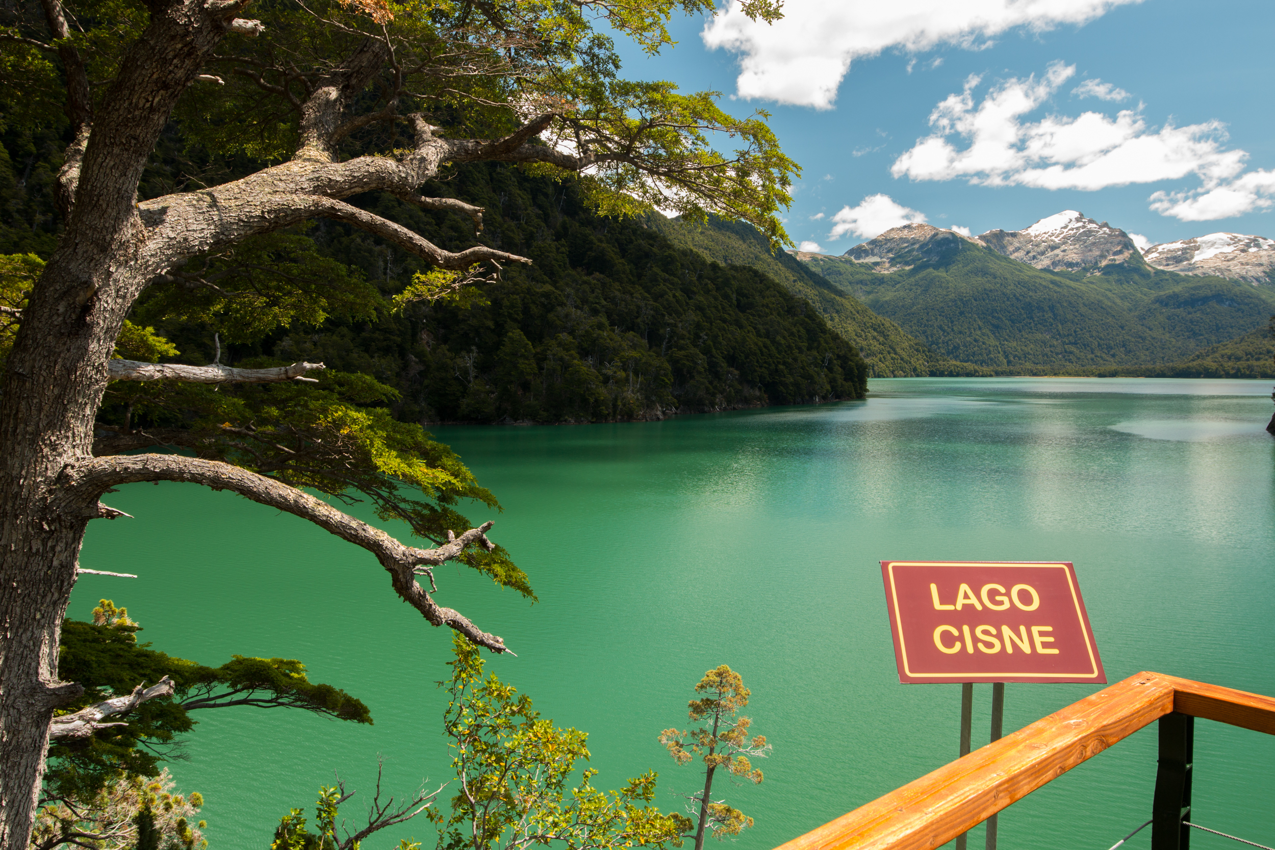 Caminando por las cómodas pasarelas entre grandes coihues, cipreses, helechos y lianas se llega al Lago Cisne, con sus aguas puras y un impecable color esmeralda. El momento es mágico y todos desean llevarse esa imagen para siempre. A partir de ese aquí el lago se encauza entre las rocas y una corta distancia sortea la diferencia de altura y se forman los rápidos del Cisne.